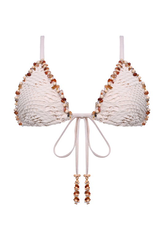 HAND-EMBROIDEREDSEAWEED LACE BIKINI TOP