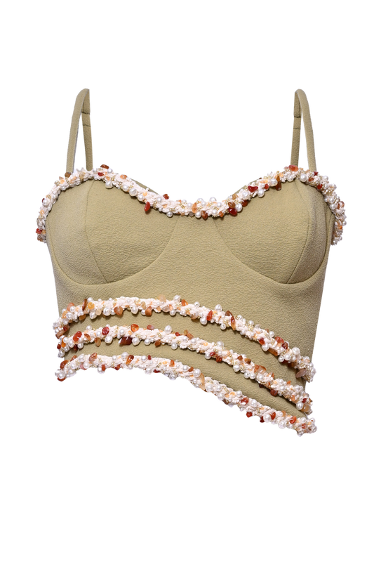 CAMILA COELHO '26PEARL DUST EMBROIDERY HALTERNECK TOP