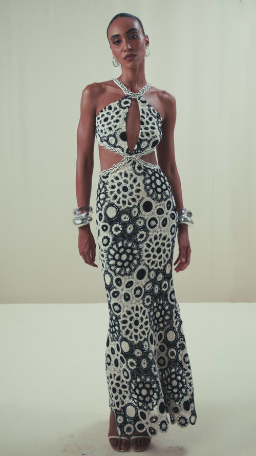 CROCHET BLOOM HALTERNECK MINI DRESS