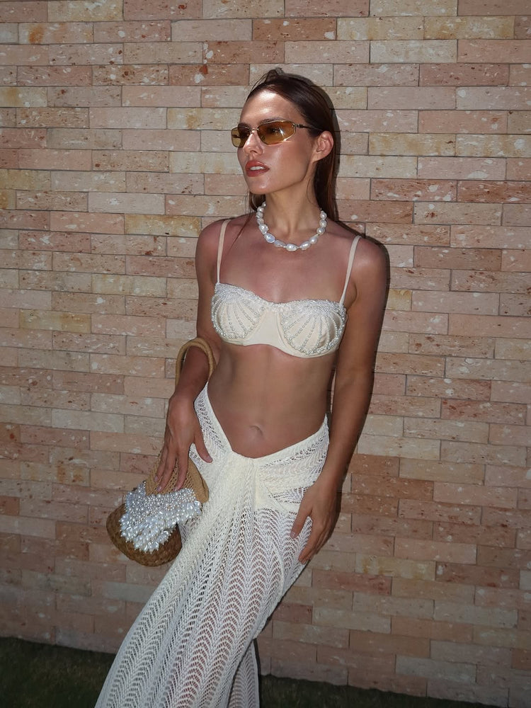 CAMILA COELHO '26PEARL DUST EMBROIDERY BRA TOP