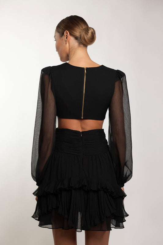 SILK PLISSE ESSENCE CUT OUT MINI DRESS