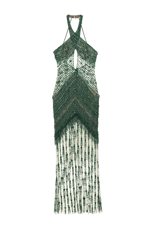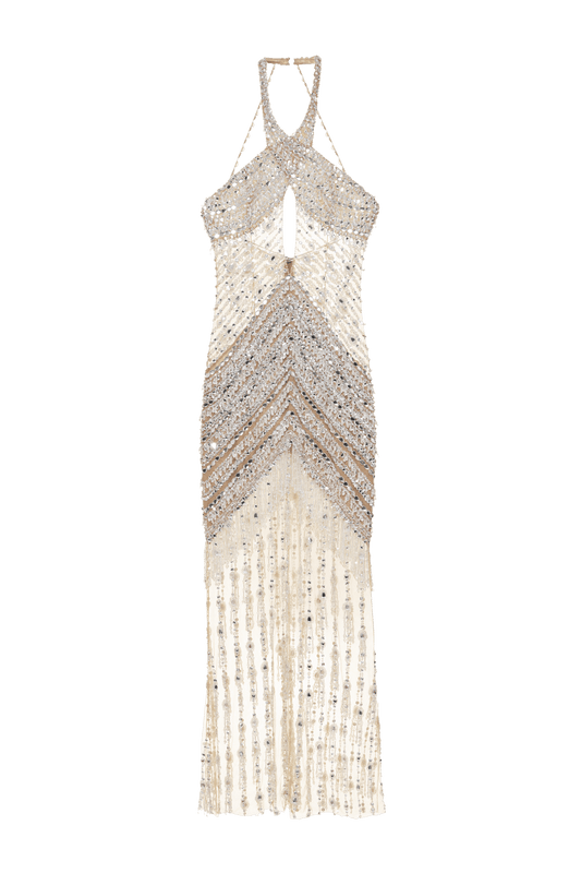 HAND-EMBROIDEREDCRYSTAL EMBROIDERY HALTERNECK GOWN