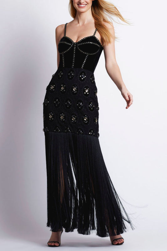 - 50%FINAL SALEBEADED VELVET LACE MAXI DRESS
