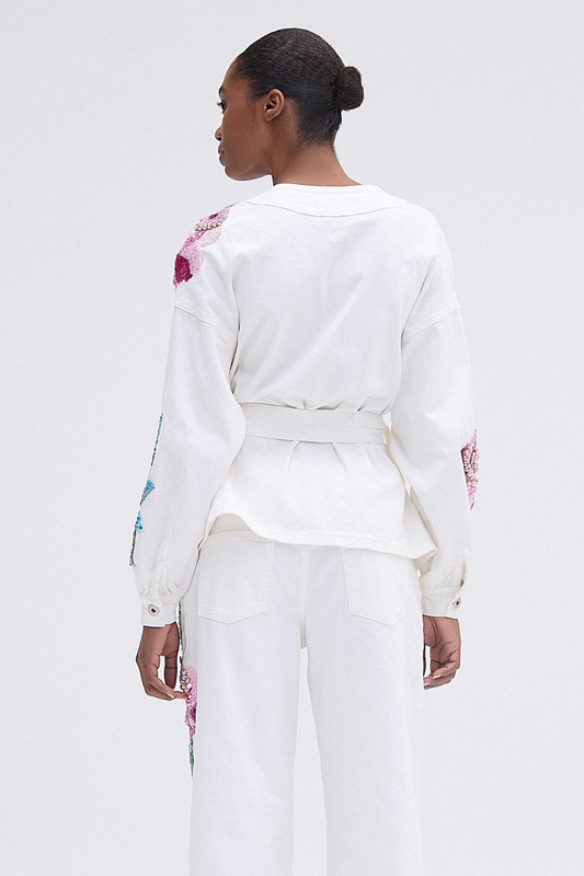 Sold outHAND-EMBROIDEREDPOPPY DENIM JACKET