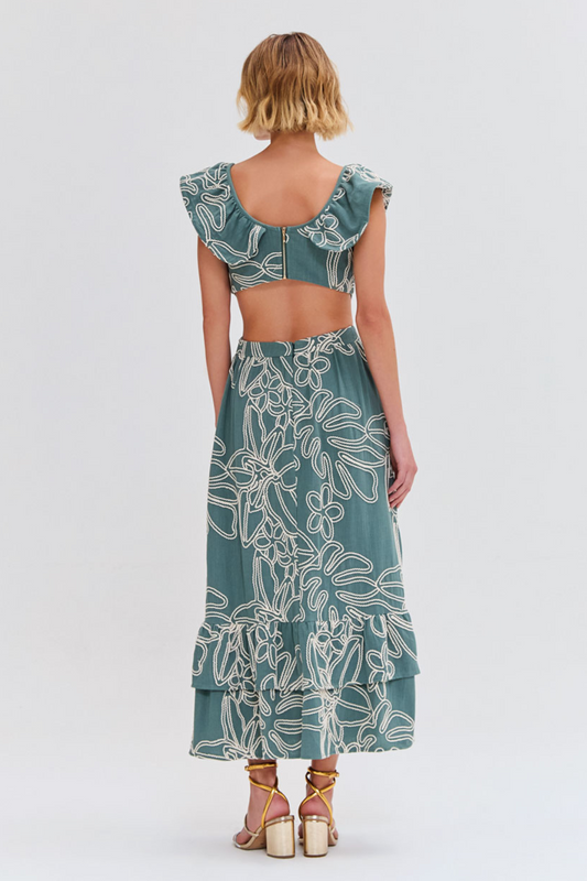 HAND-EMBROIDEREDFLUTTER MAXI DRESS (RUNWAY)