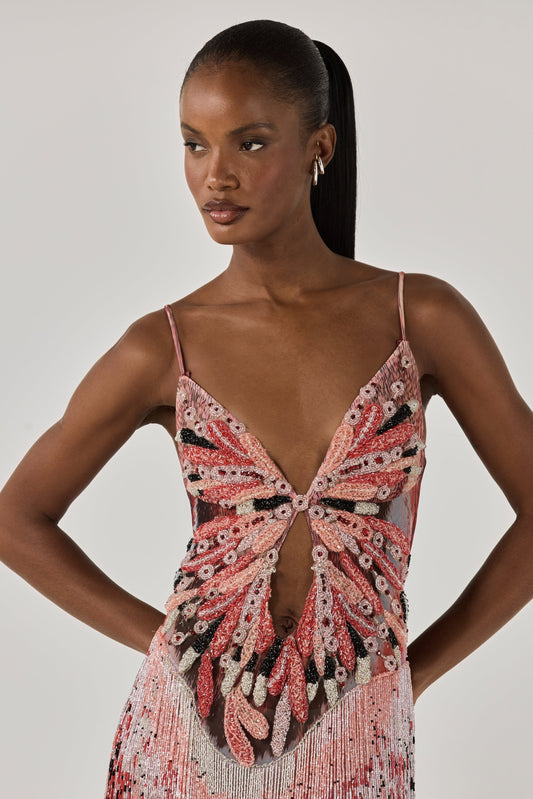 HAND-EMBROIDEREDPAPILLON CUT OUT MAXI DRESS (RUNWAY)