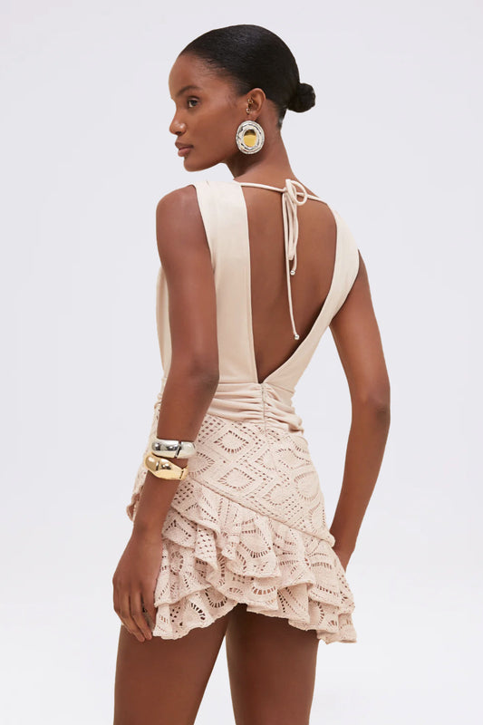 FLOWER CROCHET EMBROIDERED MIDI DRESS