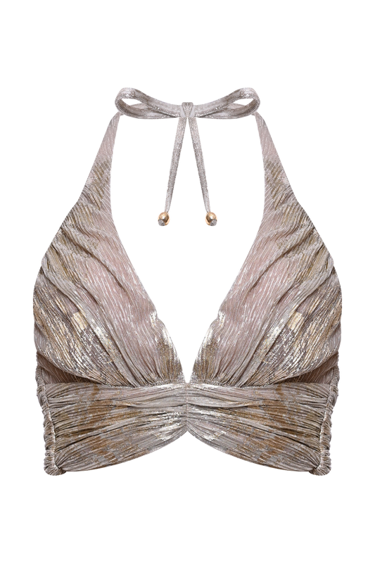 GOLDEN DUST LUREX PLUNGE MINI DRESS