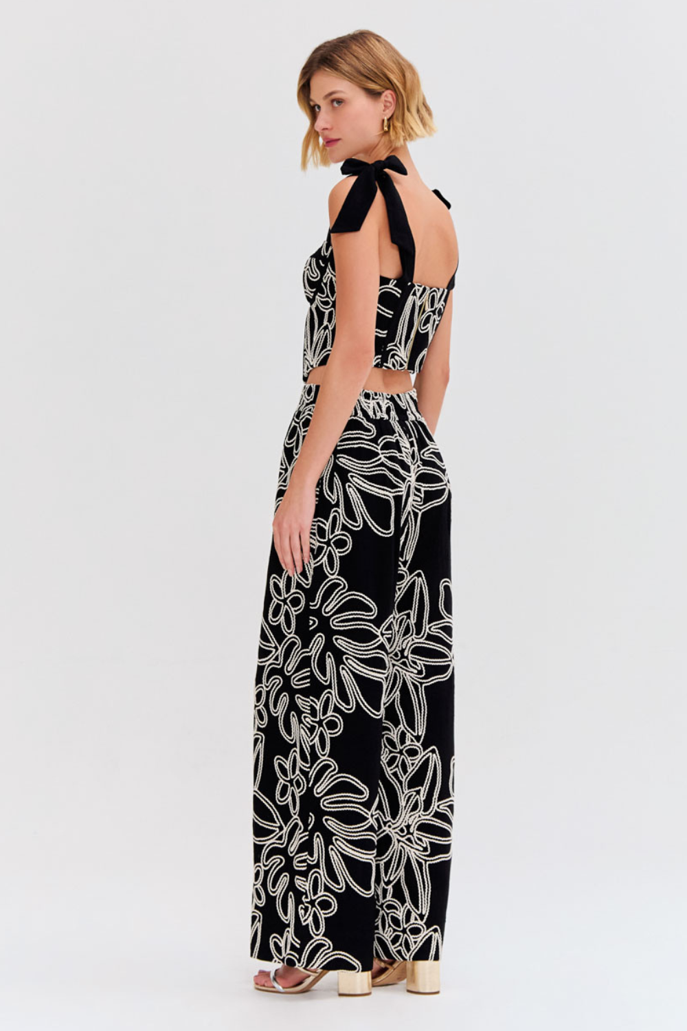 This top features our Asas linen print for a cropped bustier style top with built in boning for support, tie detail at the shoulders along the straps with an exposed zipper closure at the back.