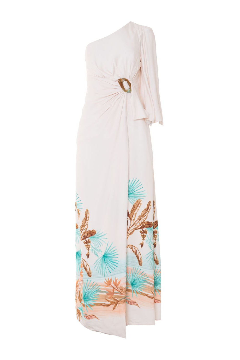 BANANEIRA TROPICAL ONE SHOULDER MAXI DRESS