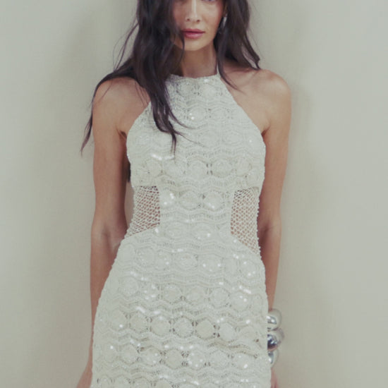 CROCHET BLOOM HALTERNECK MINI DRESS