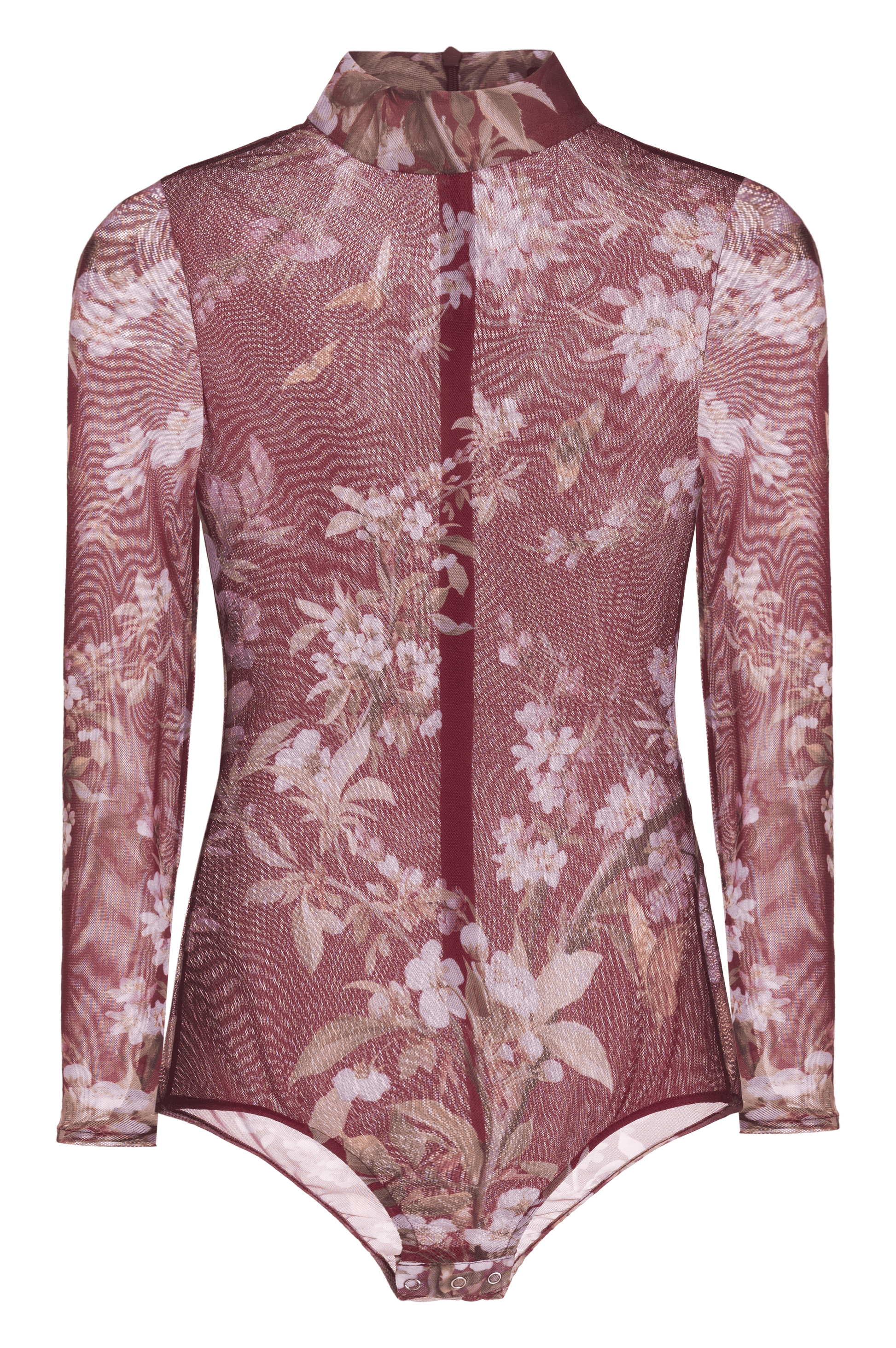 The Delicata Tulle Bodysuit is a sleek, long-sleeved piece featuring a high neckline and the exclusive Delicata motif. Crafted from soft, sheer tulle, it hugs the body like a second skin, blending boldness with elegance. The snap-button closure at the base ensures a secure and comfortable fit.