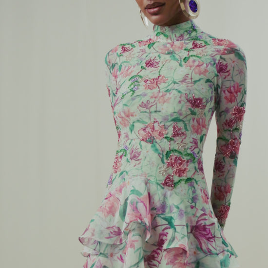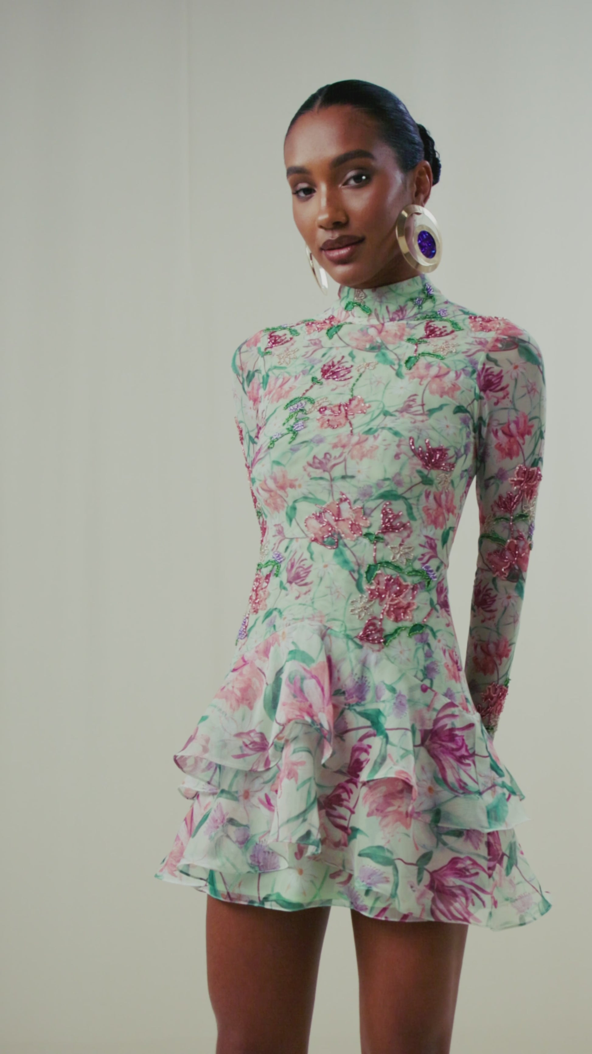 HONEY FLOWER LONG SLEEVE MINI DRESS