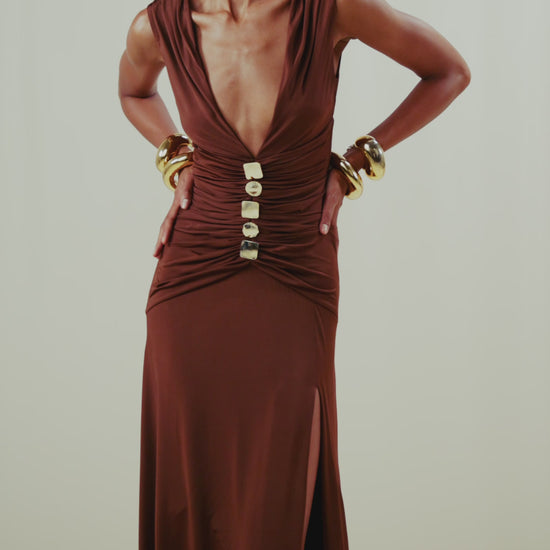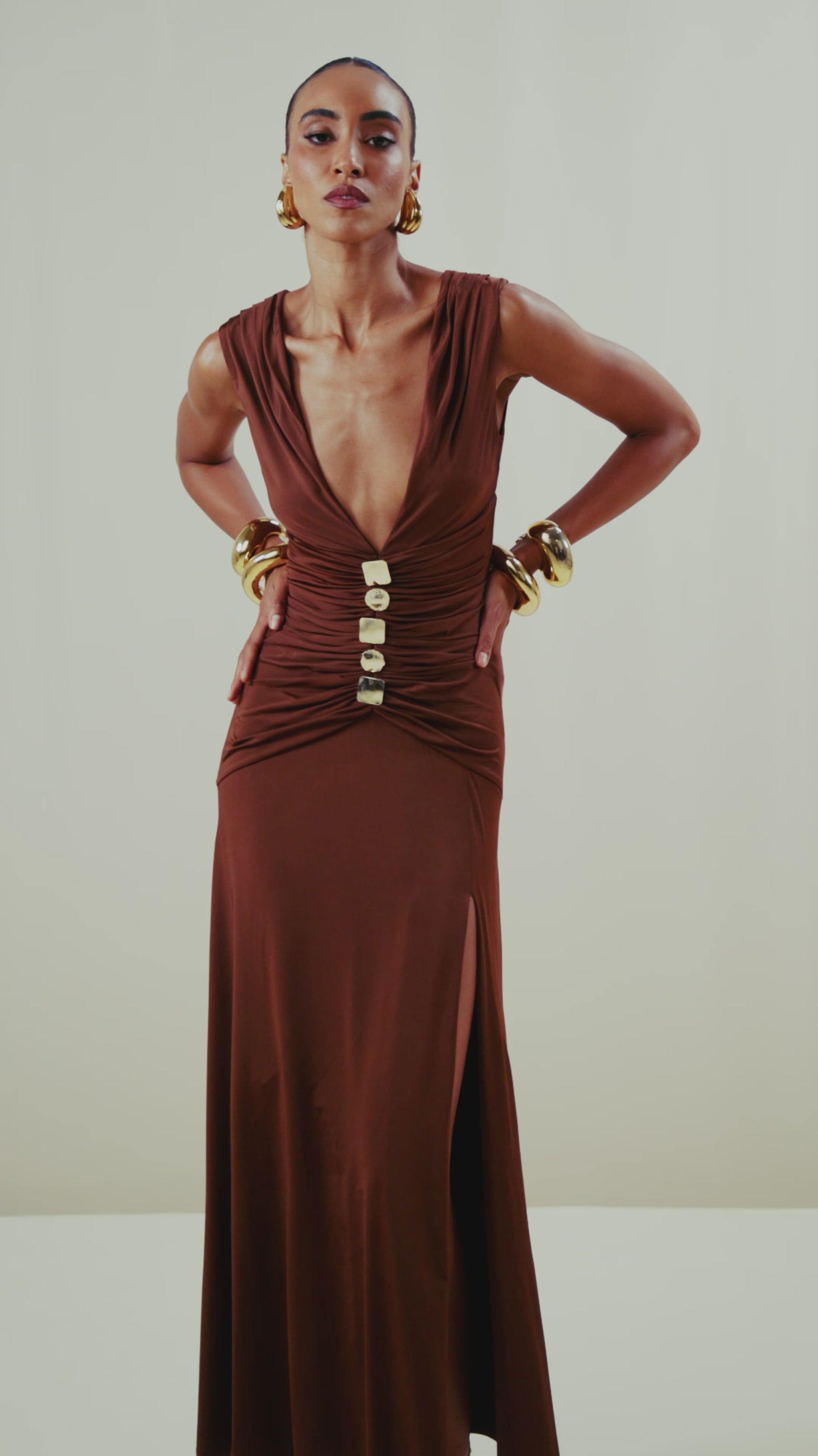 Made in Brazil. Model wears size 4. 94% Viscose, 6% Elastane. VEL33198