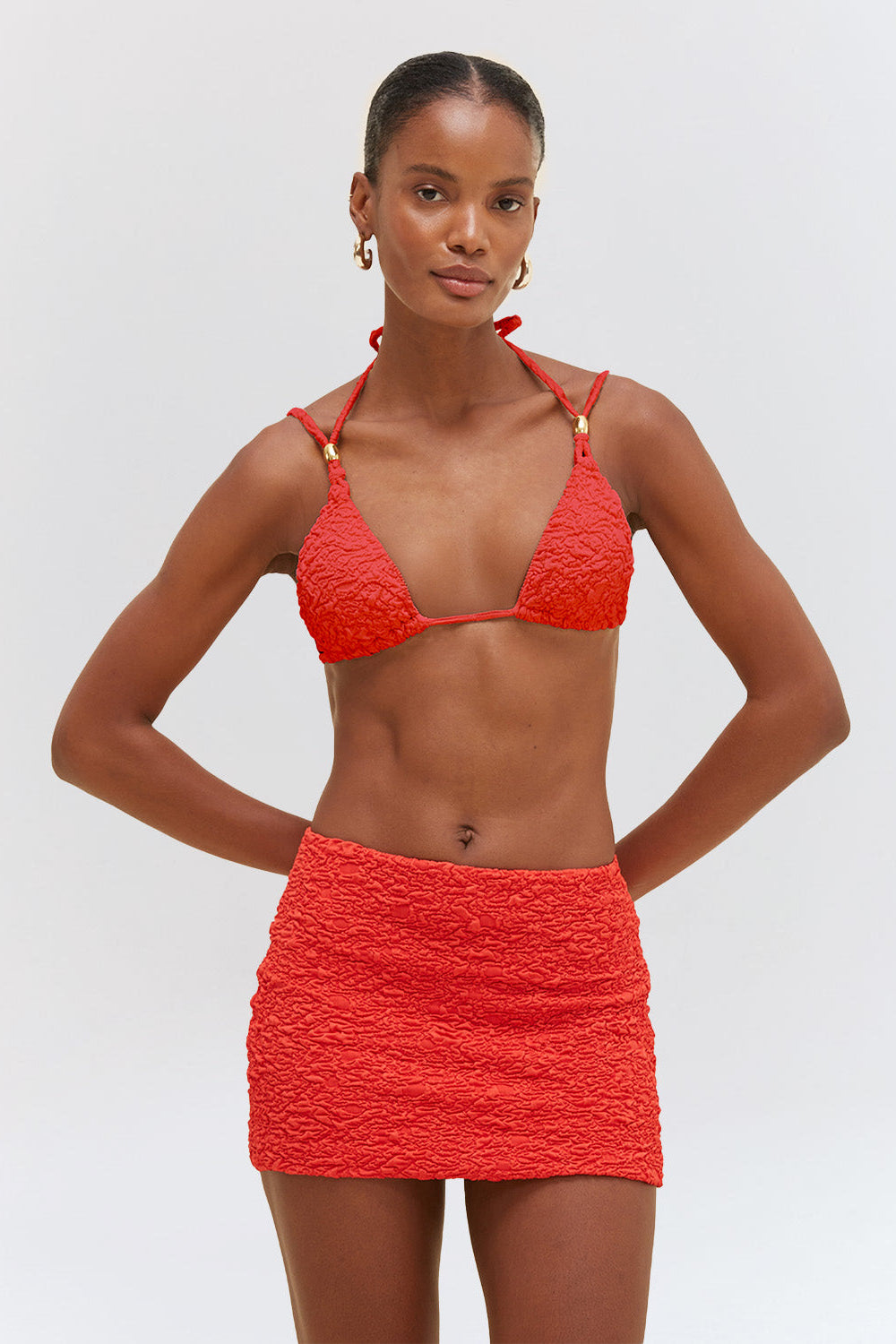This skirt is made of stretch jacquard fabric for a classic mini skirt cover up design.