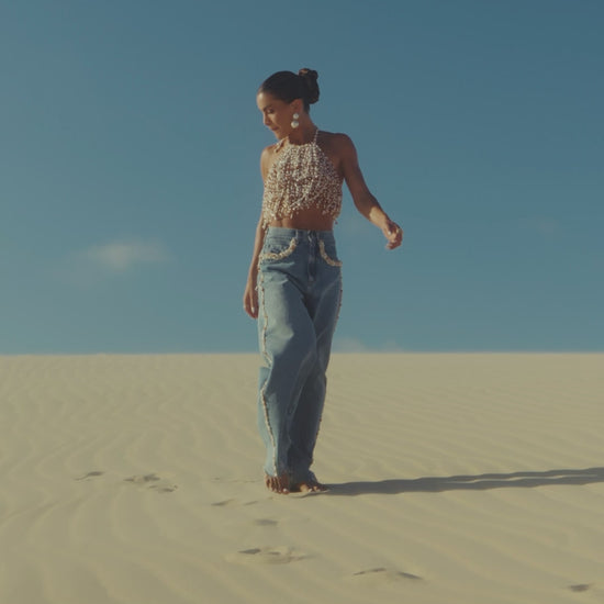 PEARL DUST EMBROIDERY HALTERNECK TOP